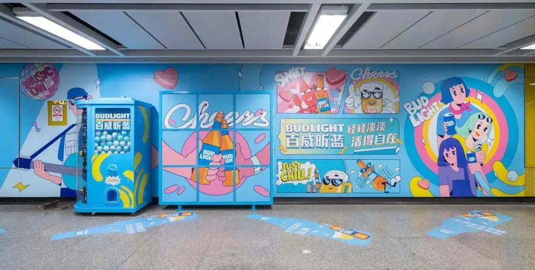 百威昕蓝以充满活力的姿态登陆广州地铁,并赢得了无数年轻消费者的喜爱。啤酒瓶plus+、童年*爱的复古潮酷街机,可以一秒戳破的解压泡泡墙、一扭解锁惊喜的扭蛋机、趣味翻转墙里的搞笑哈哈镜、表情包墙上滑稽可爱的磁性贴等互动装置,趣味又出片,不仅视觉冲击力拉满,还兼具社交属性。